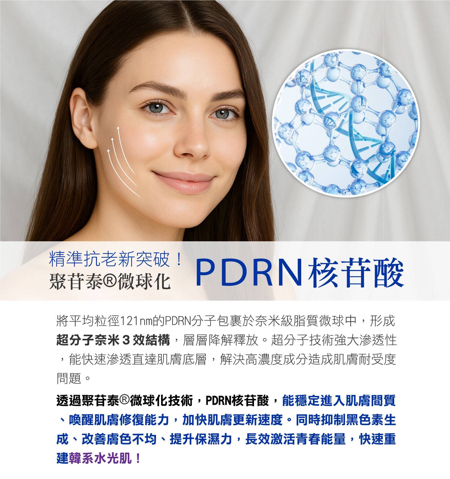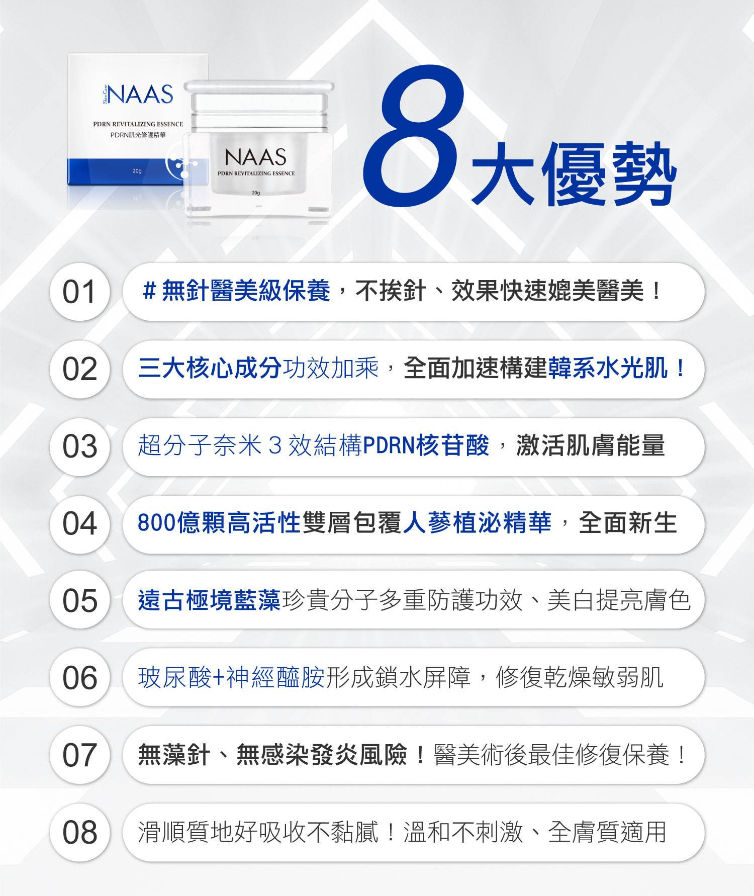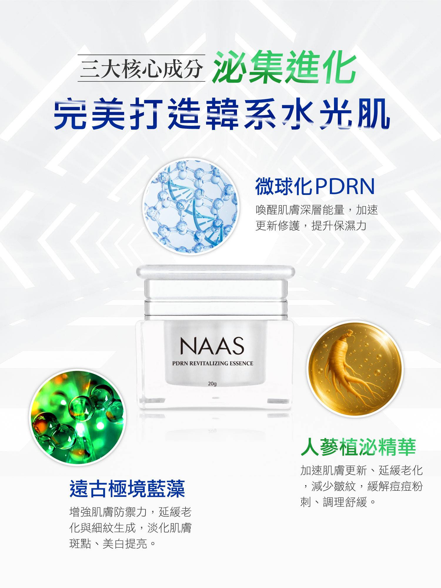 無針醫美級保養,PDRN,抗老緊緻抗皺,全面加速修復新生,遠古極境藍藻,多層次緩釋保濕,韓系水光肌